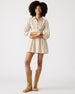 The ARIA dress is a must-have for your wardrobe. The menswear-inspired design features a corset waist and back waist smocking for a flattering fit-and-flare silhouette. Made from soft cotton poplin. this mini dress will be your go-to for any occasion.