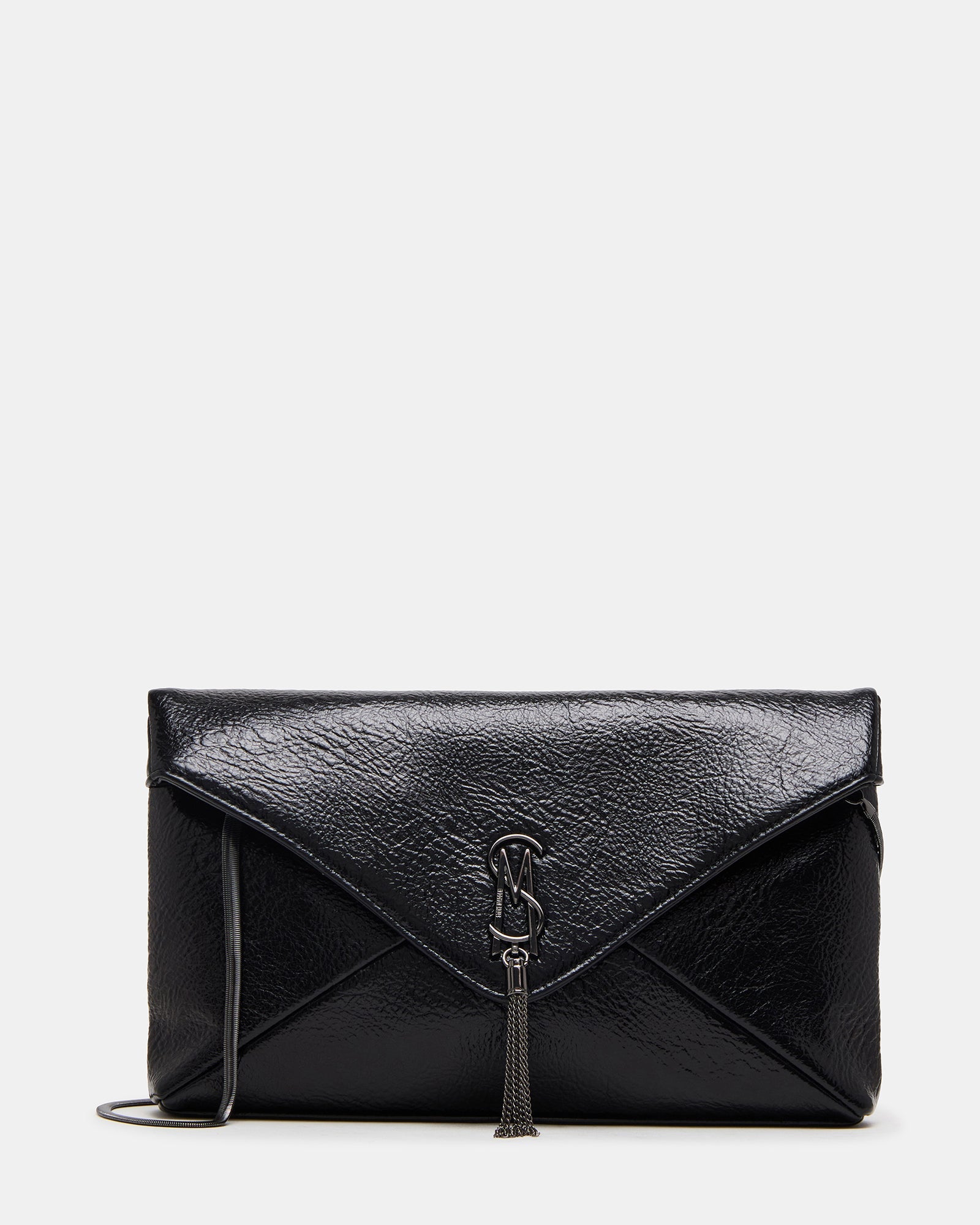 This stylish clutch handbag. the PARTAY bag. features a soft mag snap closure. back zipper wall. and slip pocket. Its tassel logo adds a touch of elegance while its crinkle look gives it a unique texture. Perfect for any occasion. this bag also comfortably fits large phones.