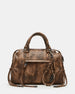 Expertly crafted with a slouchy satchel design. this RIGGS bag is a top-handle bag that combines style and function. Featuring dome stud details and knotted fringe decals on a gusset with rounded bottom metal aglets. it also comes with an attachable crossbody strap for versatile wear—a must-have for any fashion-forward wardrobe.