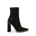 Sparkling stones trim this ankle boot's sole. outlining a silhouette that's perfectly of-the-moment. A pointed toe and tall heel lend femininity. while a cropped shaft broadens versatility.