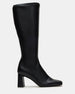 A half-zipper closure gives the HOLLY BLACK WIDE CALF knee boot a calf-defining fit while an angled block heel and a square-toe giving this style a sharp finish.