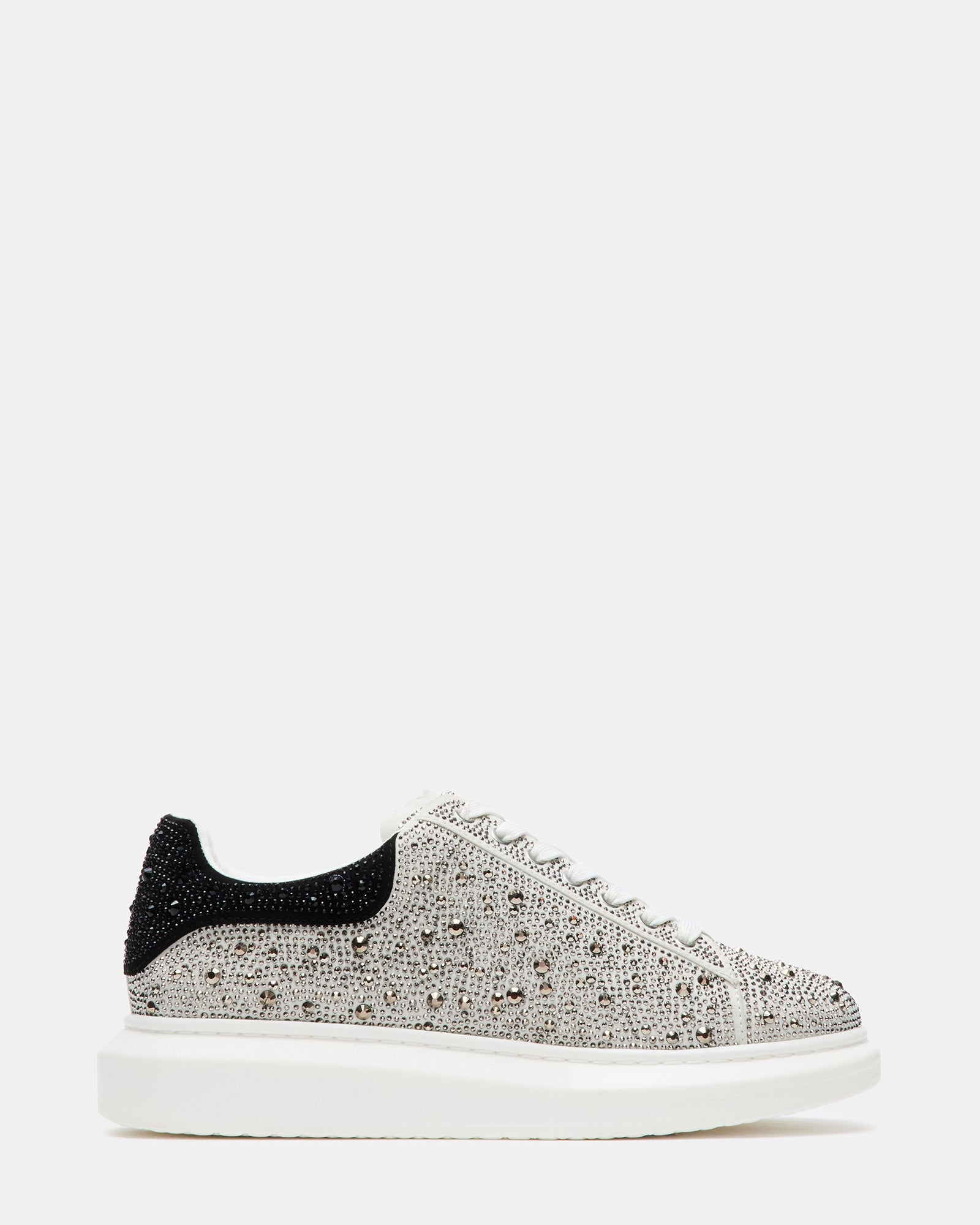 A chunky flat platform sole provides a solid foundation for the ICEBOX sneaker which features all over rhinestones in varied sizes for maximum bling effect.