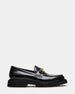 The NAXOS BLACK LEATHER slip-on loafer combines timeless style with durable design. featuring a signature horsebit hardware decal for a refined touch. Its lug sole offers enhanced traction and stability. making it a versatile choice for both professional and casual settings. Crafted from premium materials. this loafer ensures lasting comfort and sophistication.