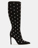 The NITRO BLACK STUDS is a sophisticated and versatile addition to any wardrobe. This pointed-toe heeled stiletto boot is designed for both style and comfort. ensuring a confident stride. With a knee-high height. it adds a touch of elegance to any outfit.