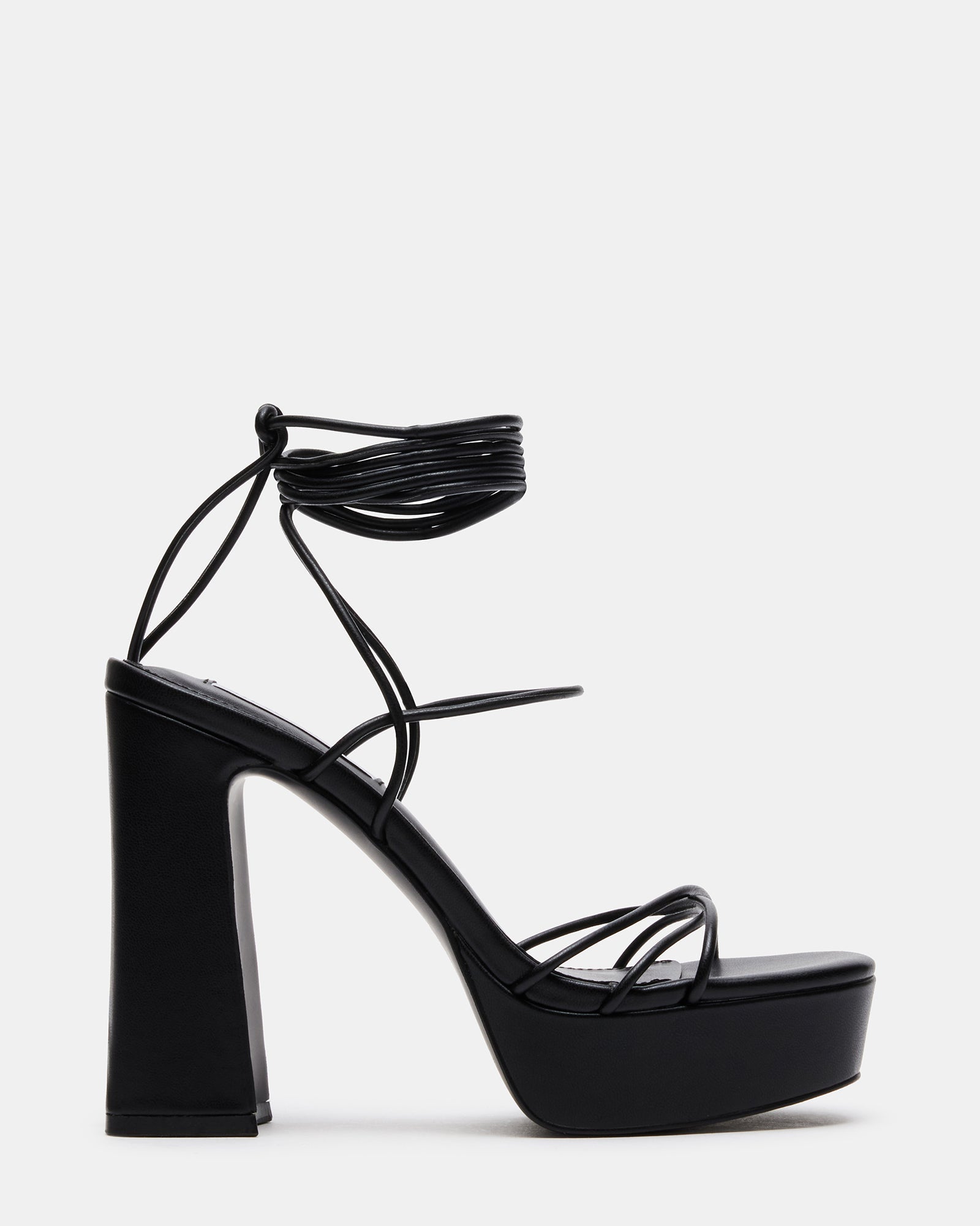 A chunky block heel and platform sole is secured with slender cord straps to give the TALLULAH sandal design dynamic contrast.