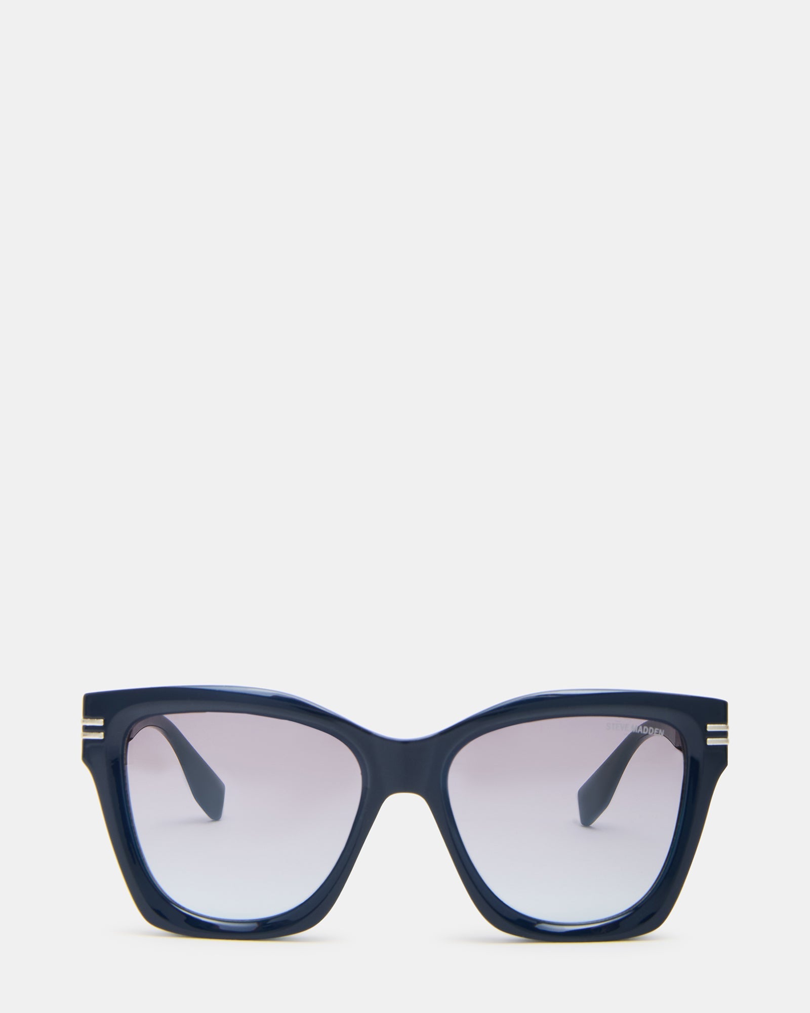 Enhance your style with TAISIA sunglasses in navy! These navy milky frames provide a trendy accessory. while the smoke-to-blue with silver flash lenses offer 100% UV protection. Elevate your look with these sophisticated and fashionable sunglasses.